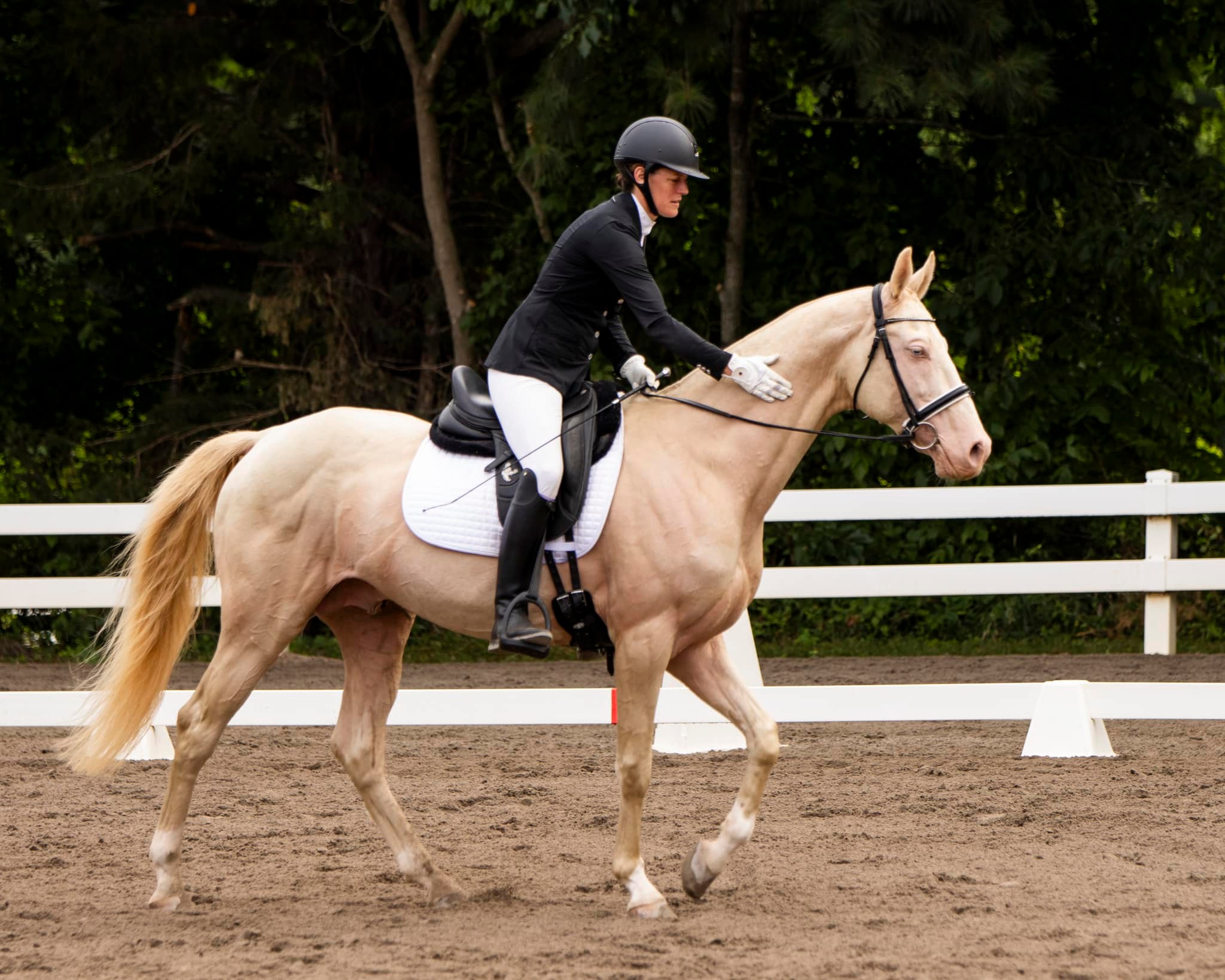 “Patrick was my first introduction to the breed, and has forever changed the trajectory of my life. His depth of spirit, personality, athleticism, and kindness are everything I sought in an equine companion, and my interactions with him have solidified that Akhal Tekes are the breed I have been searching for! Patrickhan is also a well-accomplished endurance horse who successfully completed the Tevis Cup, earning us the coveted Tevis Cup Buckle, and he was awarded Highest Mileage Akhal-Teke in North America by the Akhal-Teke Association of America.”