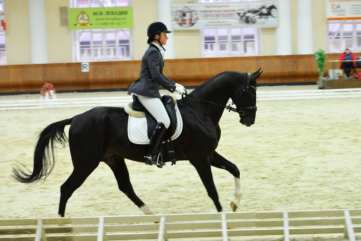 Photo of stallion Sevan Shael (Sayvan x Jennet), from his 2nd place win in an October 2015 dressage show for 5-year-old horses.